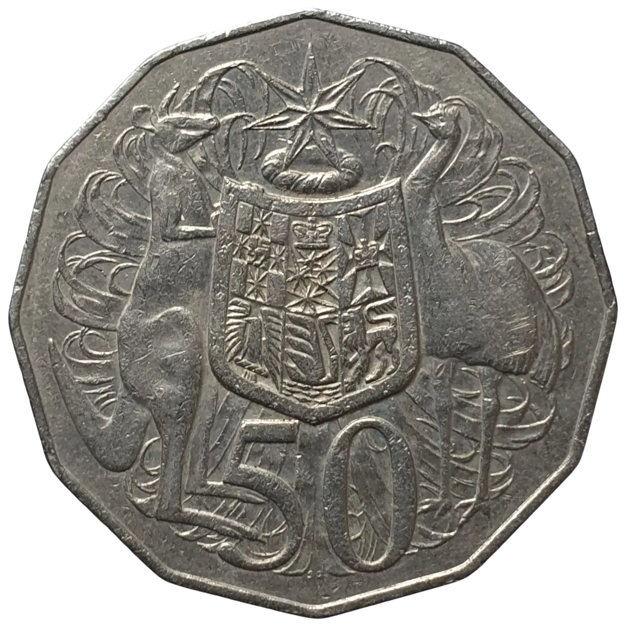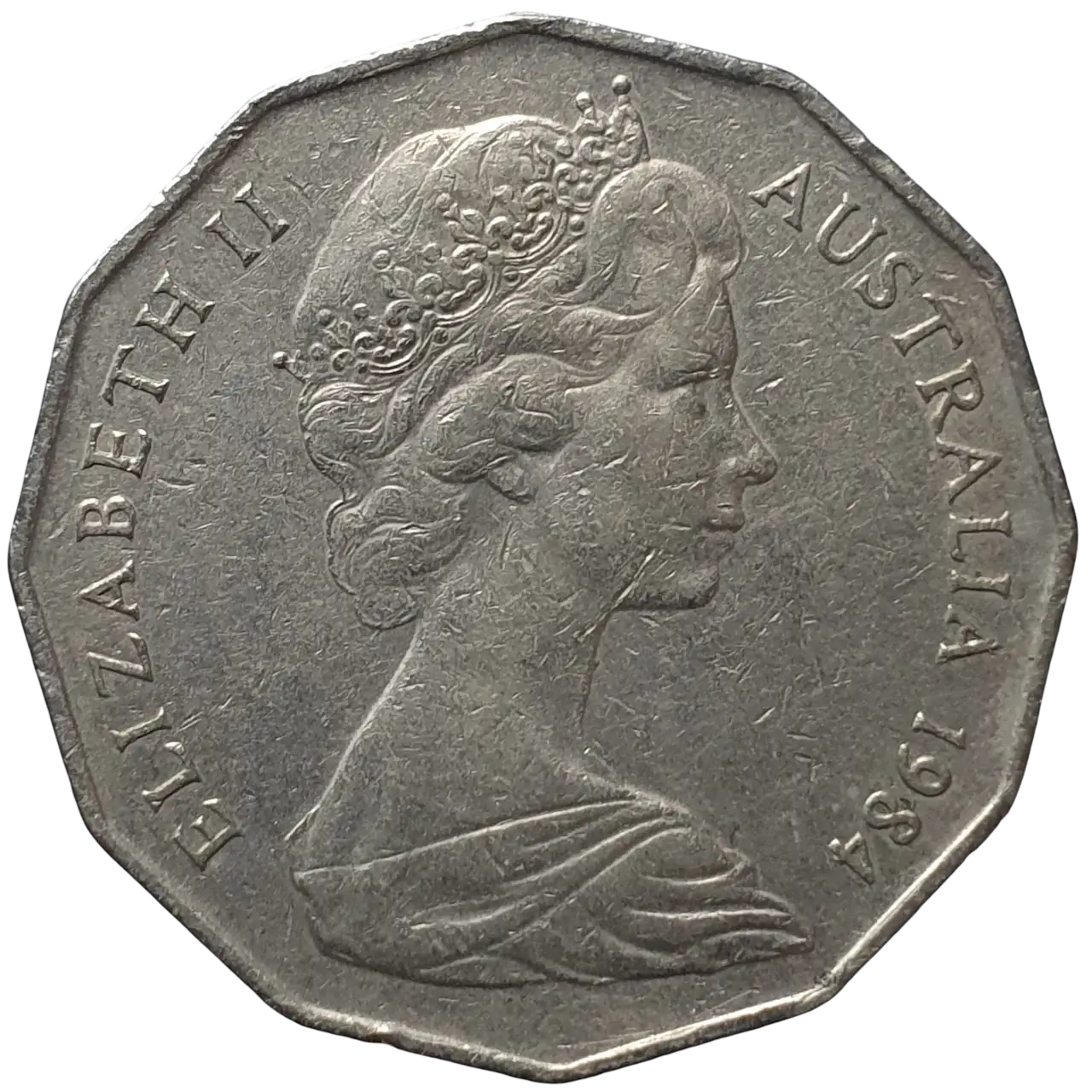 Austrália, 50 cents 1984, cuproníquel, 15.5 g, 31.5 mm, km# 68, escudo/Elizabeth II