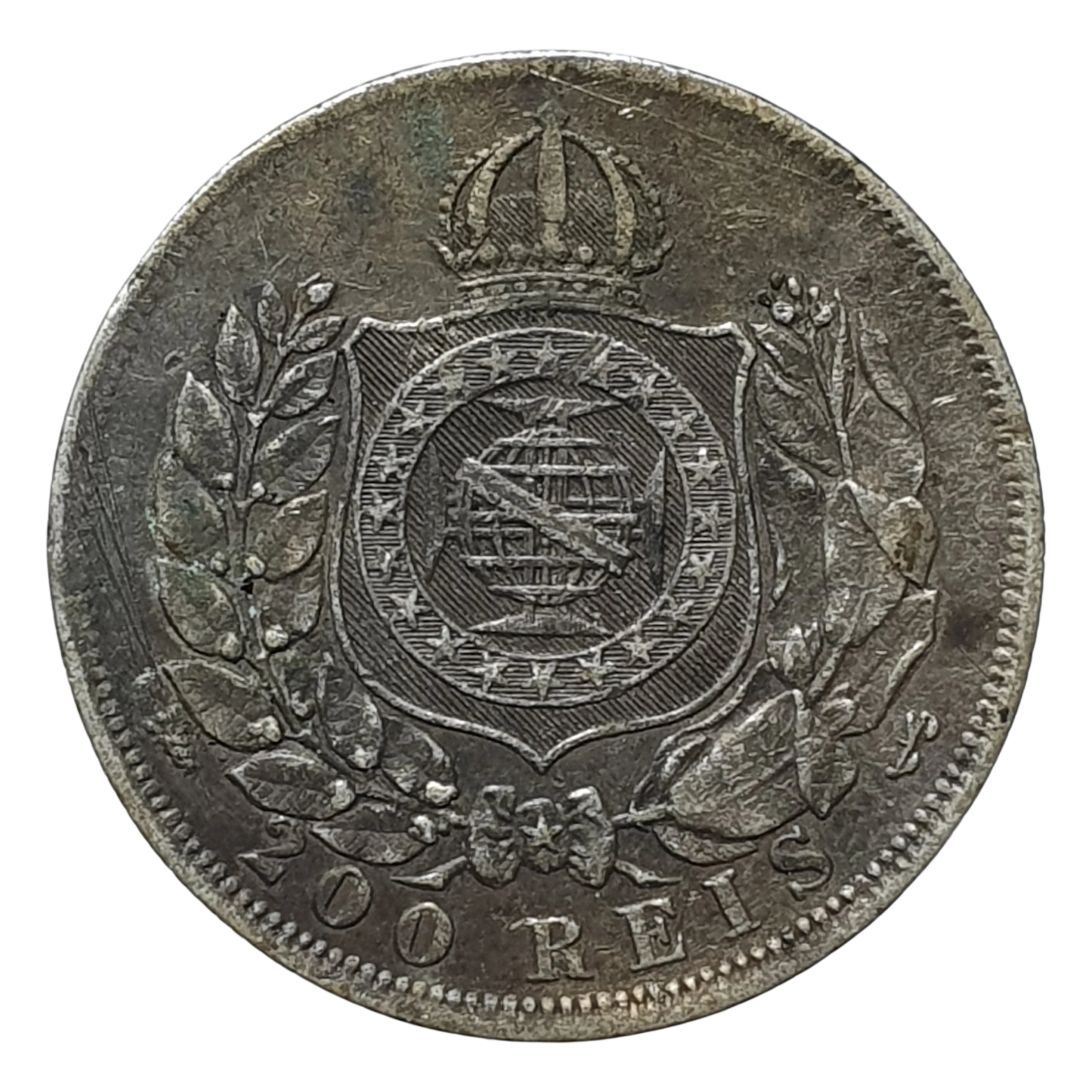Brasil, Império, 200 réis 1867 a 1869, prata 0.835, 19 mm, 2.5 g, data ilegível, km# 471