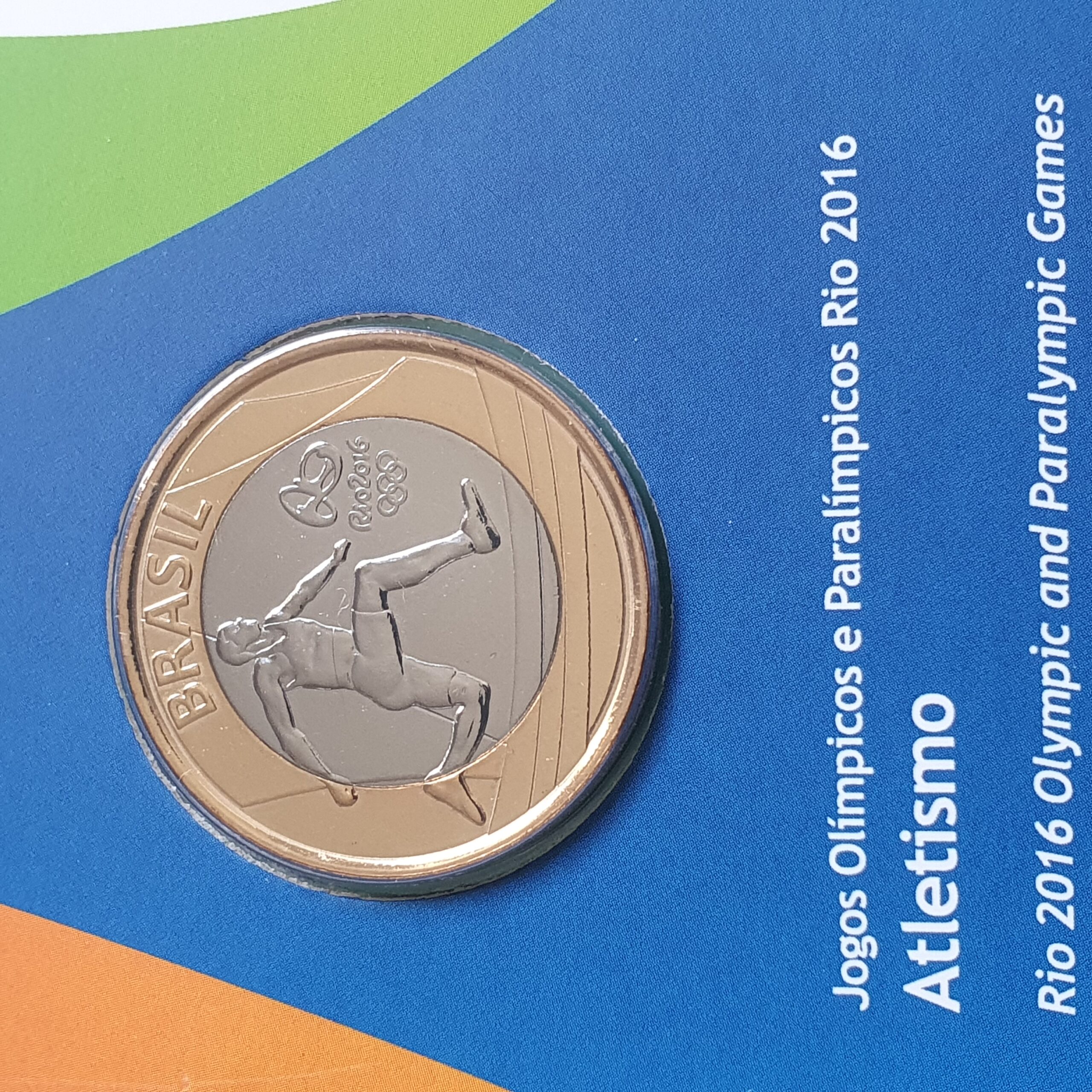 Brasil, moeda comemorativa Rio 2016: atletismo, 1 real 20014, bimetálica