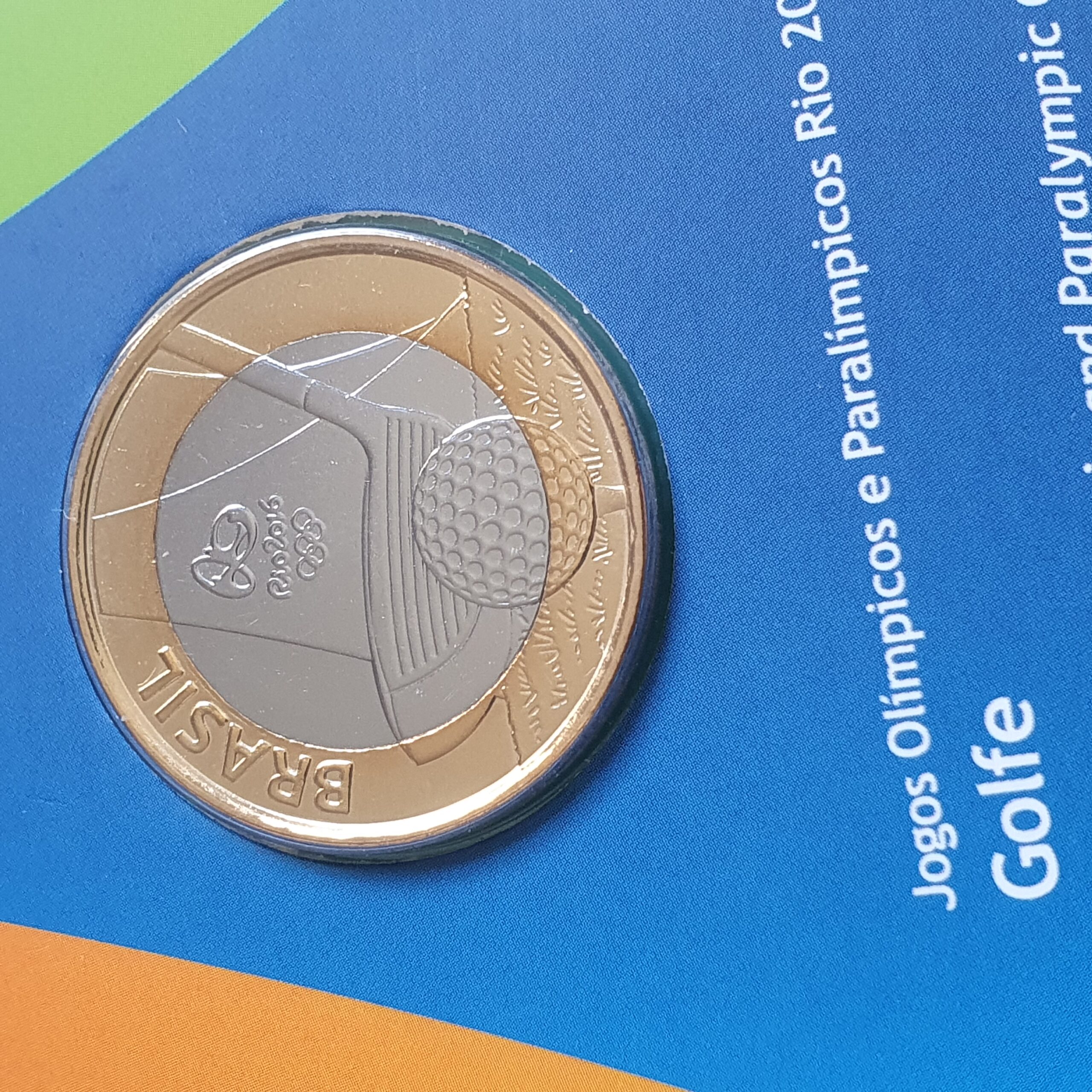 Brasil, moeda comemorativa Rio 2016: golfe, 1 real 20014, bimetálica