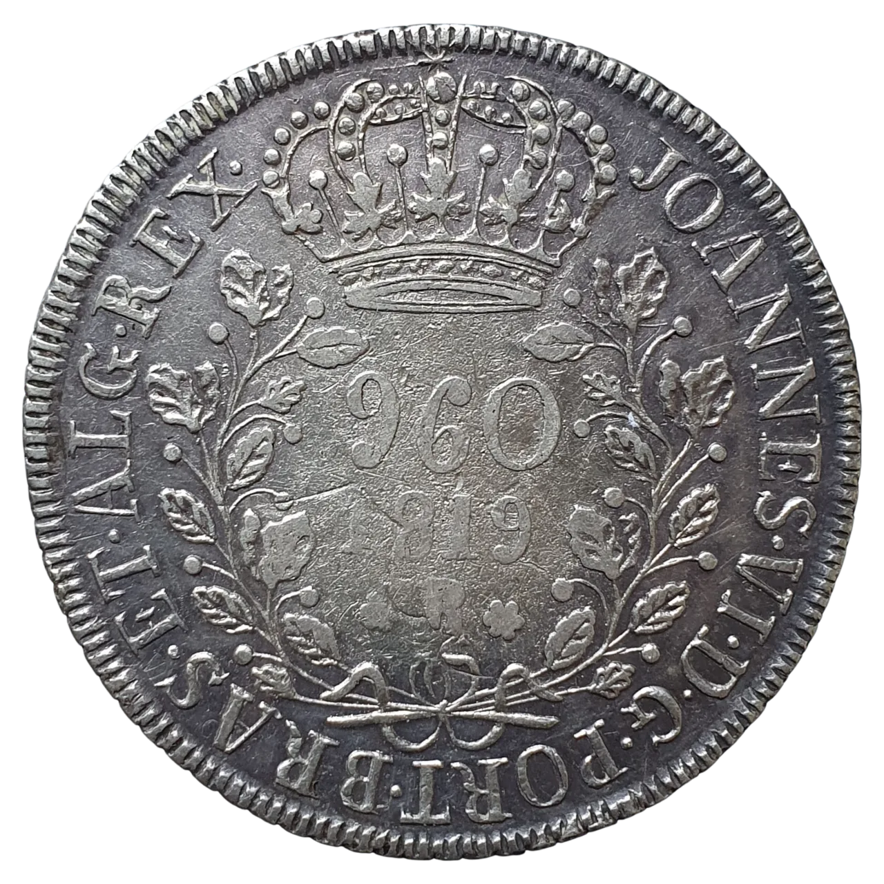 Brasil, Reino Unido, 960 réis 1819 R, 40.5 mm, 26.8 g, sobre 8 reales colonial, Bentes 387.02.01
