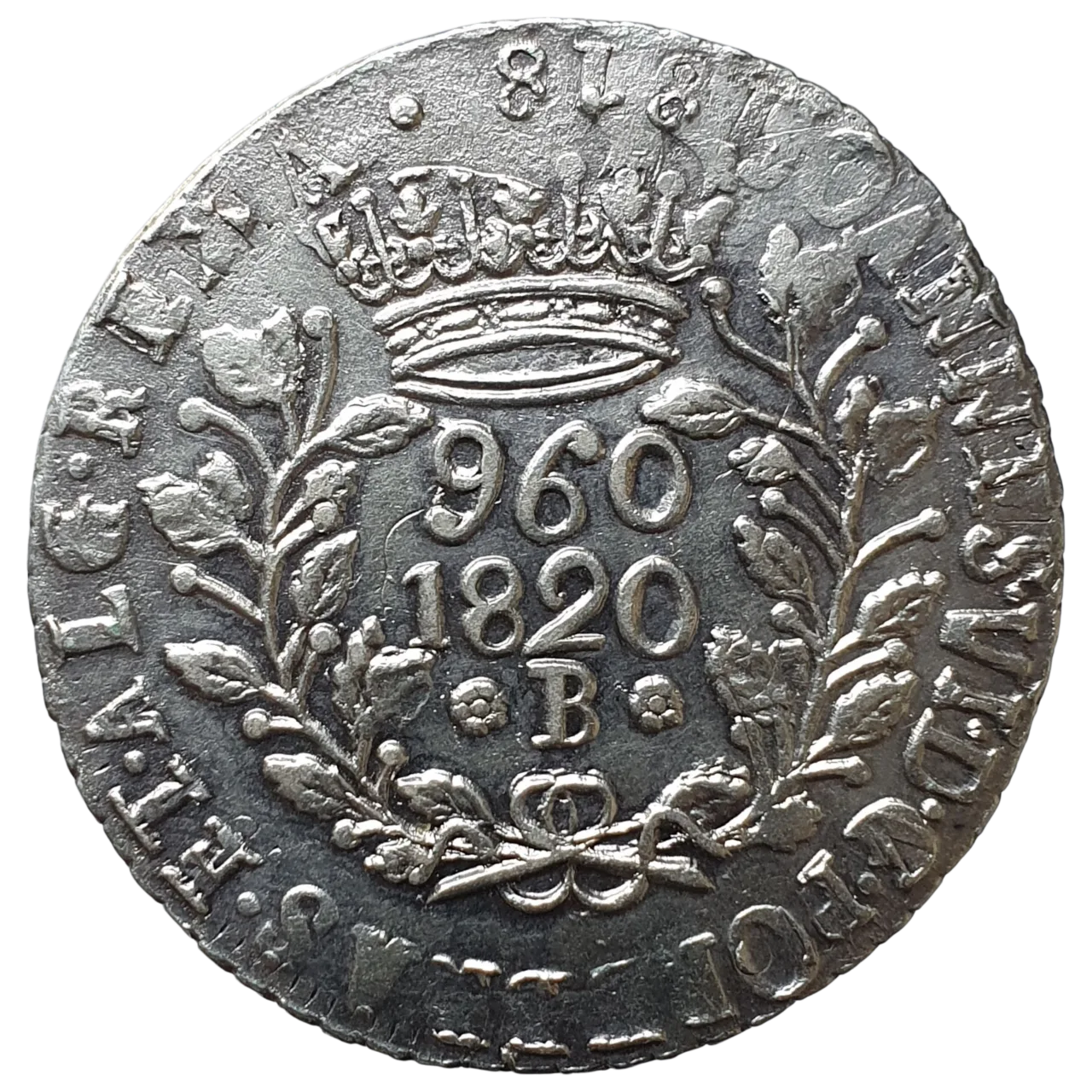 Brasil, Reino Unido, 960 réis 1820 B, 39.5 mm, 27.2 g, sobre 8 reales colonial 1818 de Fernando VII, Bentes 386.02.01