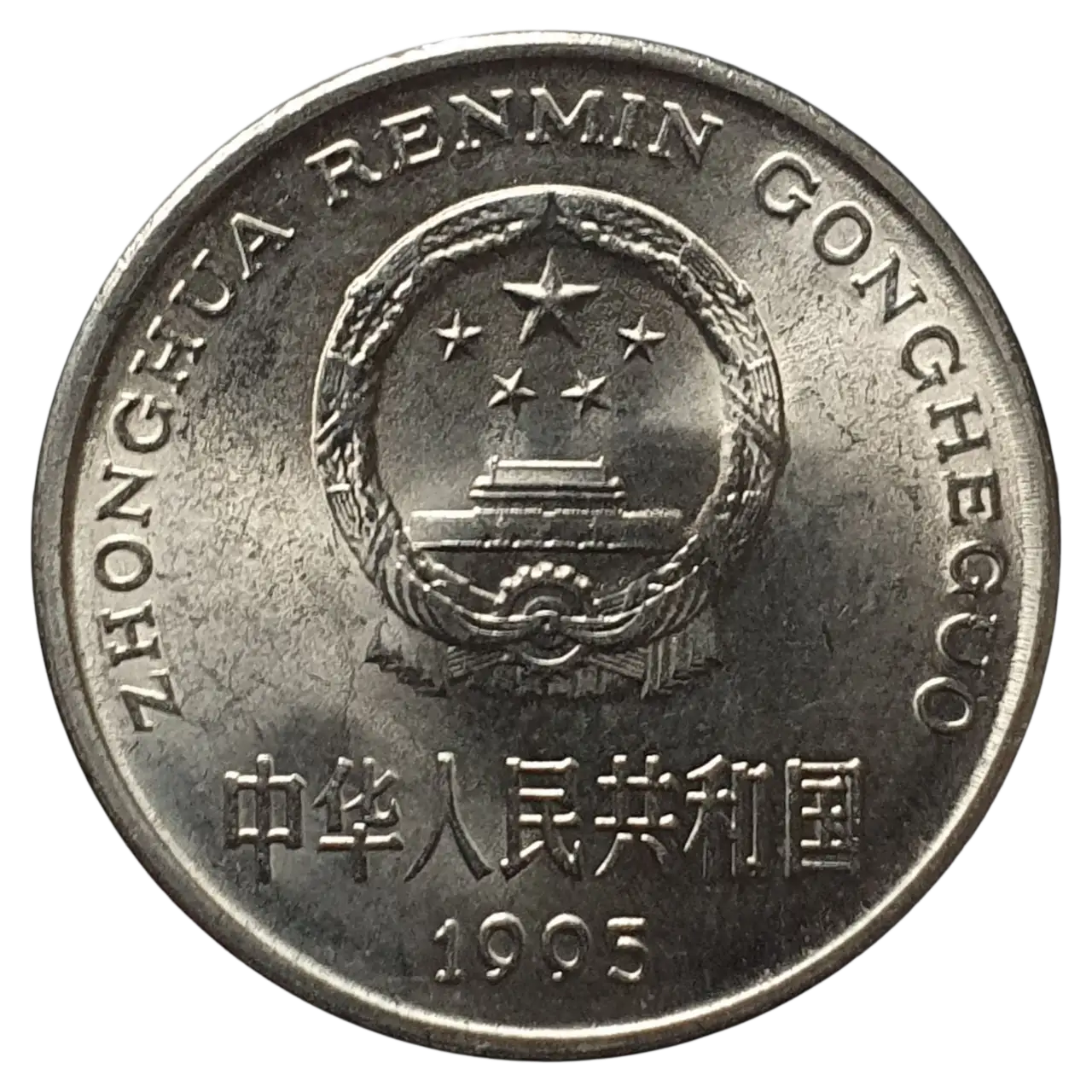China, 1 yuan 1995, aço revestido de níquel, 6 g, 25 mm, km# 337