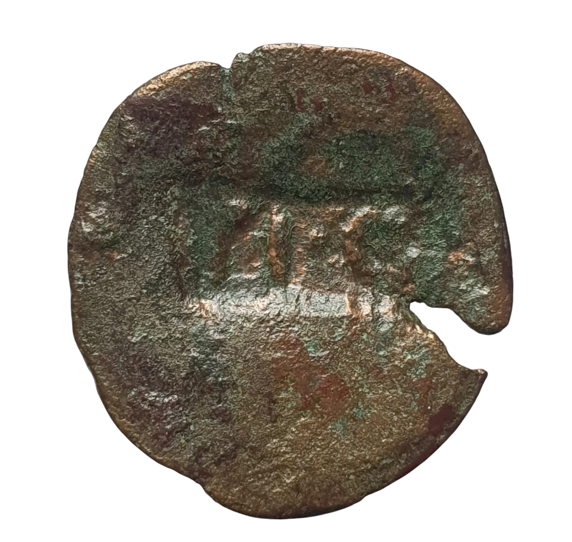 Império Romano, Imperador Cláudio (41 a 54 dC), carimbo TICA sobre provável asse de Augusto, 3.5g, 23 mm