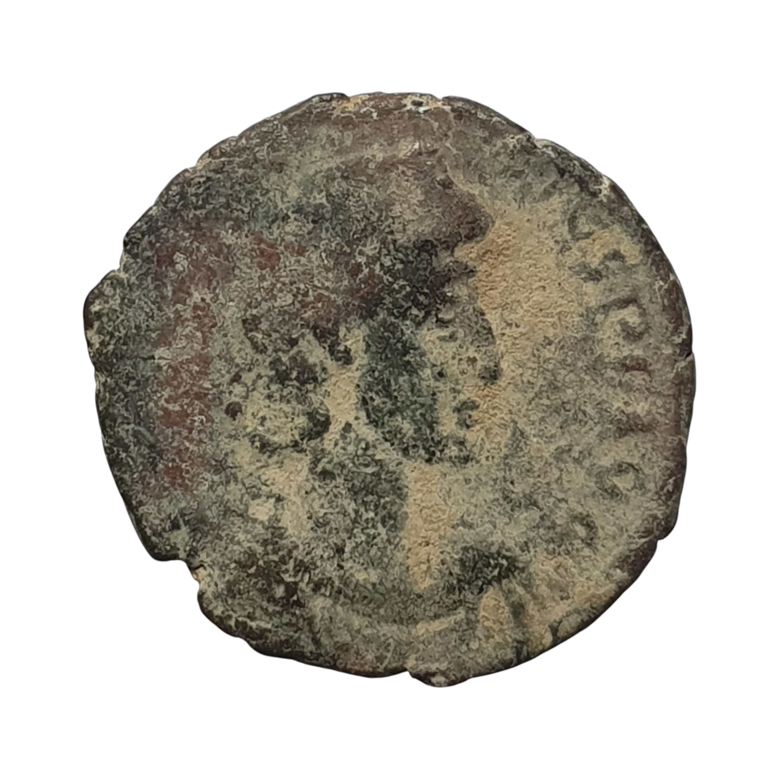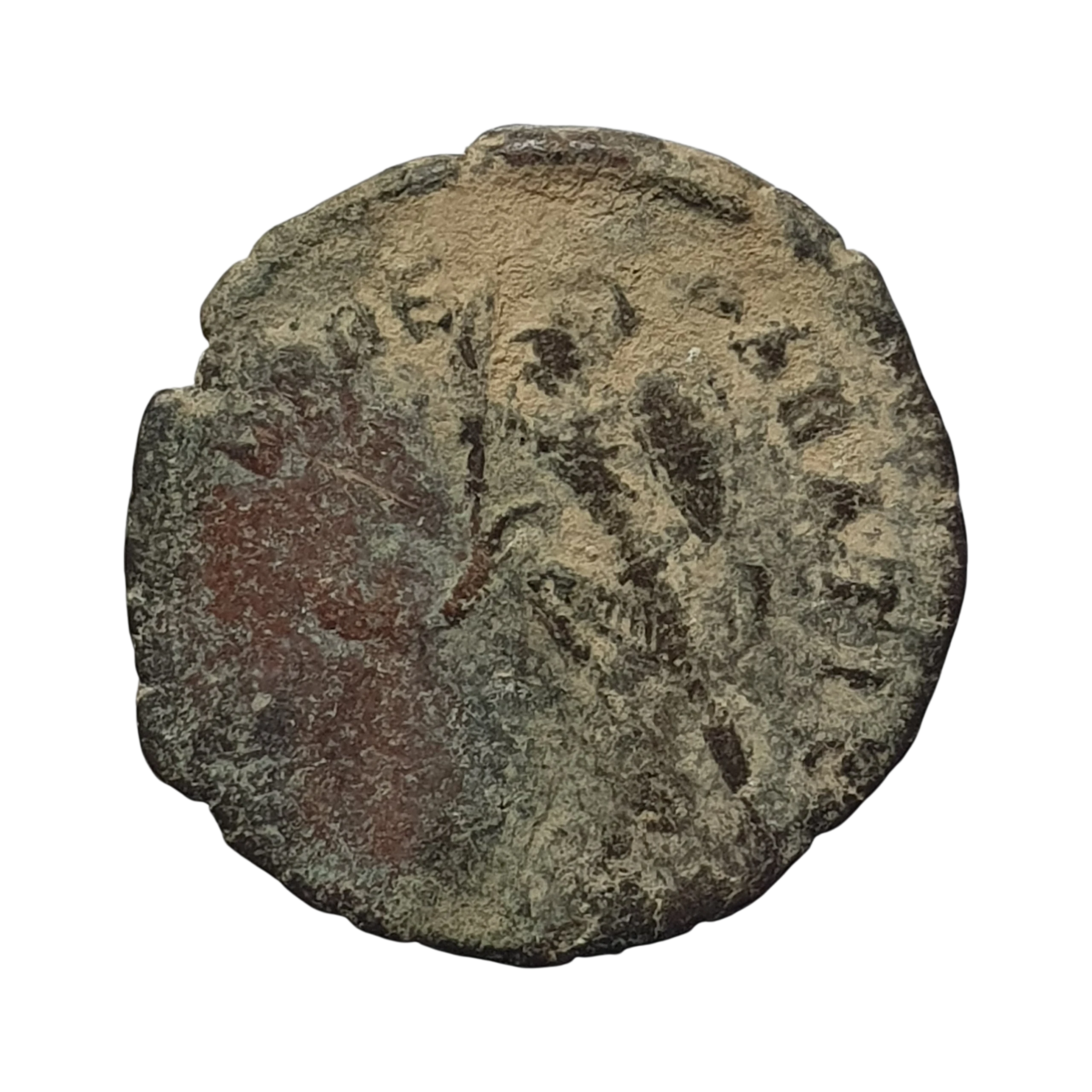 Império Romano, século 4 dC, moeda de bronze a identificar